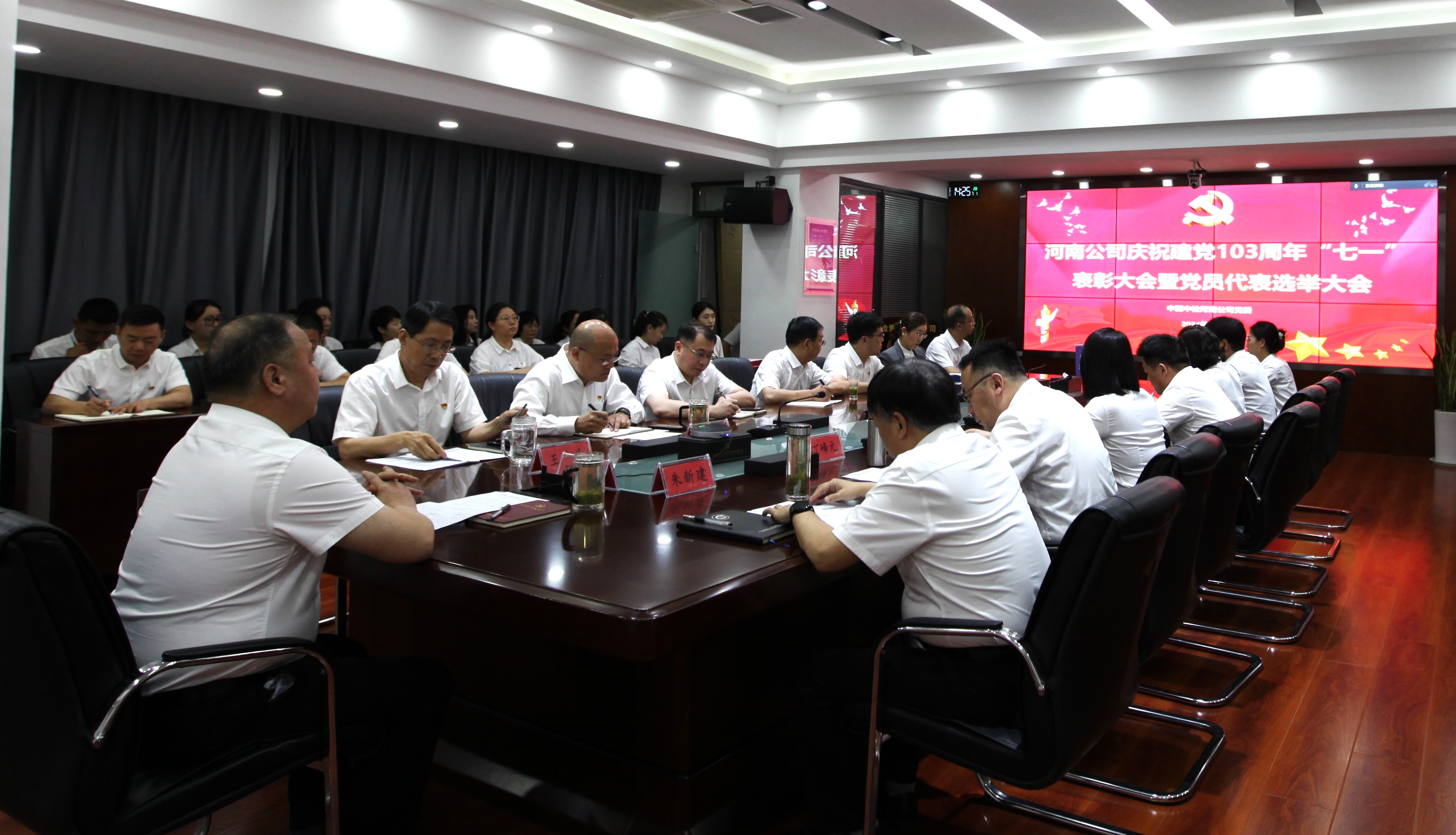 7月1日,中国中检河南公司为庆祝中国共产党成立103周年,举办 “七一”表彰大会暨党员代表选举大会。河南公司党委书记、总经理陈家强出席大会并讲话,高级经理王永生出席并主持会议,副总经理朱新建、丁峰元、任源出席大会。各党支部书记、团支部书记、全体党员代表候选人预备人选参加大会。