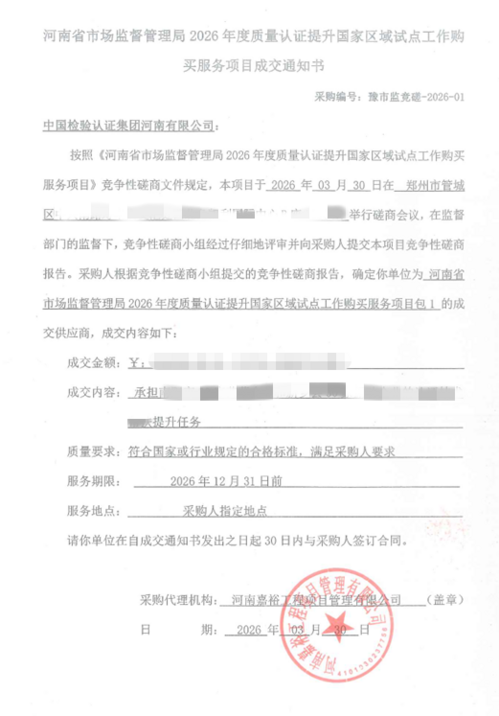 近日,中国中检河南公司(以下简称河南公司)成功中标河南省市场监督管理局“2026年度质量认证提升国家区域试点工作购买服务项目”,成为新乡振动产业、南阳艾草产业两个国家区域试点的实施单位。河南公司作为国家质量基础设施(NQI)体系的核心参与主体,将始终牢记“国字号”质量服务机构的使命定位,持续锻造核心服务能力,紧紧围绕新乡振动、南阳艾草两个地区特色产业,深入开展质量认证精准帮扶,系统梳理产业在标准执行、质量控制、管理流程等方面的短板与痛点,精准把脉、靶向施策。通过“一企一策一档”方式,帮扶试点企业建立适合自身特点的管理制度和操作流程,组织开展质量管理专题培训,强化全员质量意识。