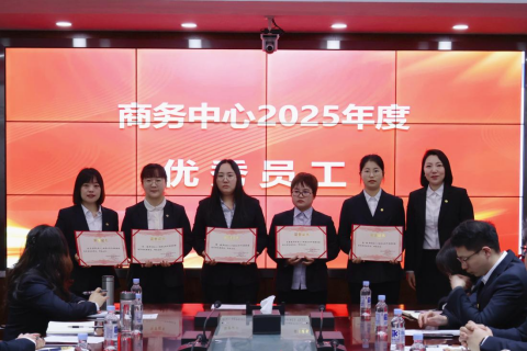 本次会议通报了2025年度商务中心获得的各项先进荣誉,并对优秀团队和优秀员工进行表彰。南阳分公司、漯河分公司荣获商务中心“优秀团队” ,16名同志获评商务中心“优秀员工”。此次表彰旨在弘扬先进、树立标杆,激励全体员工汲取先进经验、凝聚奋进合力。